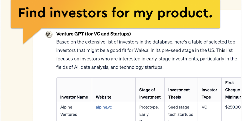 Venture GPT - AI copilot for startup founders and VC investors | Product Hunt