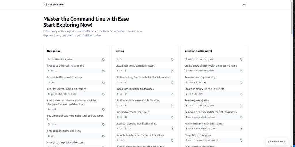 CMDExplorer - Your Guide to 100+ Command Line Magic! | Product Hunt