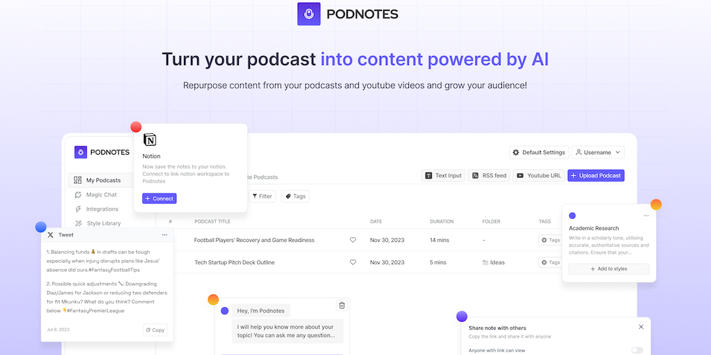 Podnotes - Transcribe, summarize and create content from your podcasts | Product Hunt
