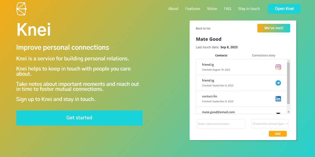 Knei - Personal connections tool to keep in touch regularly | Product Hunt