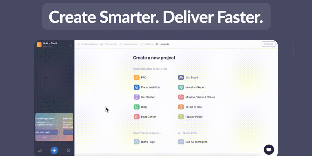 Generate tailored FAQs, docs, blogs, and job boards with Notice AI in 30 seconds. Just input your website's URL or provide a prompt to get a ready-to-use blog. Plus, enjoy translation into over 100 la