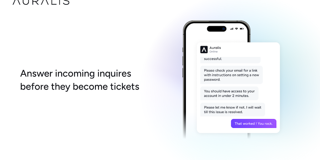 Auralis is a conversational AI offering that helps you retain happier customers with better support and fewer agents. It does this by directly handling 70% of customer inquiries thus saving 50% of sup