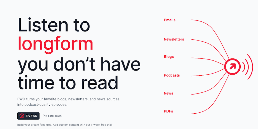 FWD Audio - Listen to longform you don't have time to read | Product Hunt