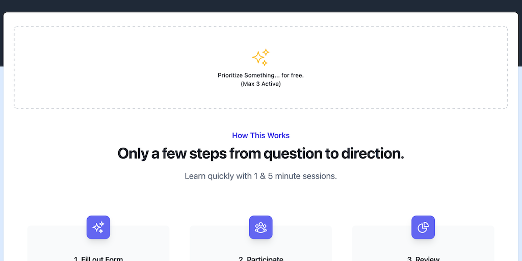 Free tool to prioritize a subject with others. Nothing fancy, just results. What to prioritize, invite people, then get prioritized results with satisfaction hints. No logins, signups, cc's, and so on
