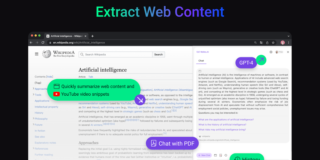 Walles.AI is a browser personal AI assistant that empowers you to work smarter and learn faster on the web. It provides answers to your questions, summarize any web contents, enhances your writing, an