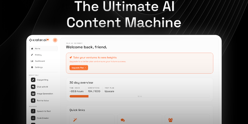 Krater.ai is your All-in-one AI SuperApp. Say goodbye to juggling multiple AI apps and hello to streamlined productivity. All of your Generative AI apps, one application. Welcome to the future.