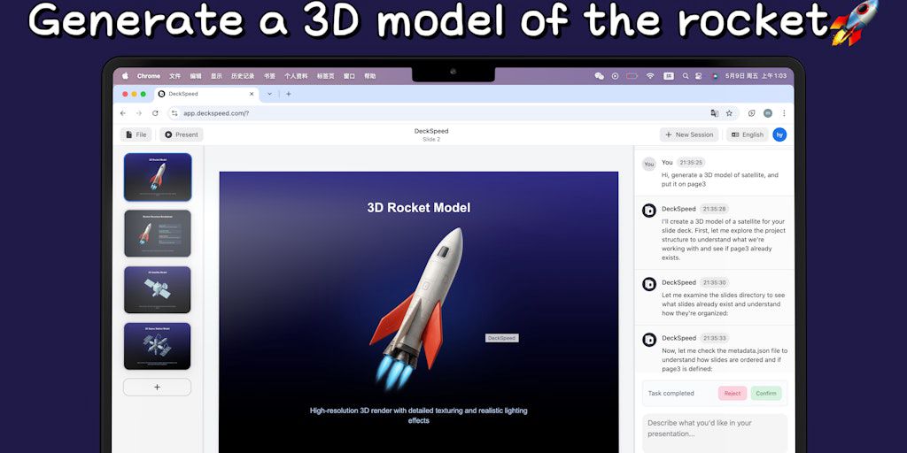DeckSpeed is a revolutionary AI presentation tool that creates professional, personalized slides based on your conversations, without templates. In other words, it's "Cursor for Slides", "McKinsey for
