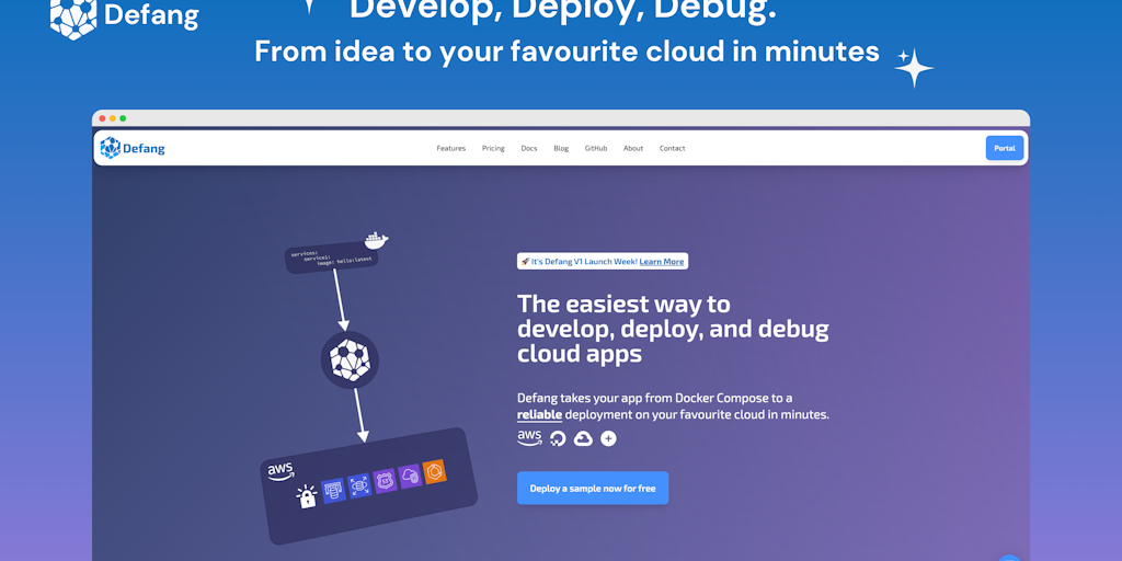 Defang enables a radically simpler way to develop, deploy, and debug production-ready cloud apps in minutes.