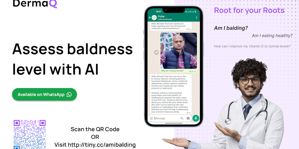 Scared of losing your hair? DermaQ AI is the easiest way to know if you are balding & its root cause. Upload scalp/head pictures for in-depth analysis of your hair & future likelihood of baldness. Als