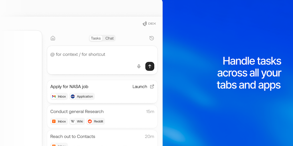 Browser extension to proactively organize tabs, shortcut workflows, and handle tasks for you. Your digital mind in Chrome. Turn your browser into an AI command center.