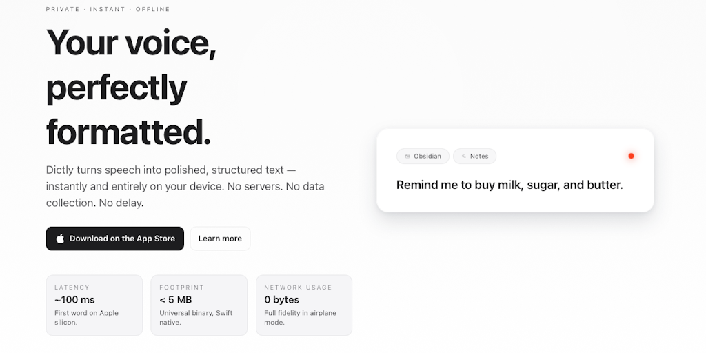 Dictly: Private, on-device dictation — fast, styled and 100% offline | Product Hunt
