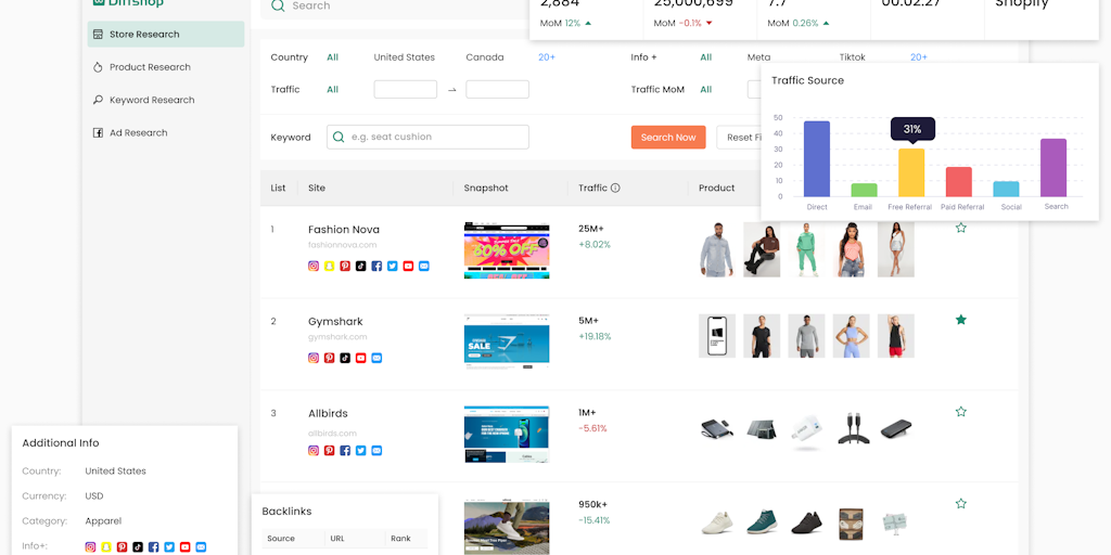 Diffshop is a combination of: Shopify Spy, Shein Spy, Temu Spy and Ads Spy. Ideal for dropshipping product research, discover best sellers and trending products on Shopify, Shein and Temu, Facebook, I
