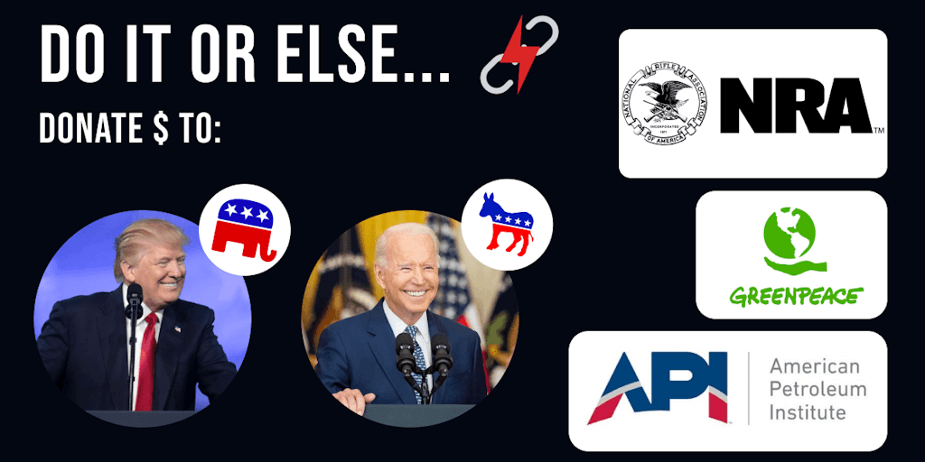 Do you have trouble following through on your goals? With "Do It Or Else" you can link MASSIVE pain to not following through. Like for example donating $ to Trump or to the American Petroleum Institut