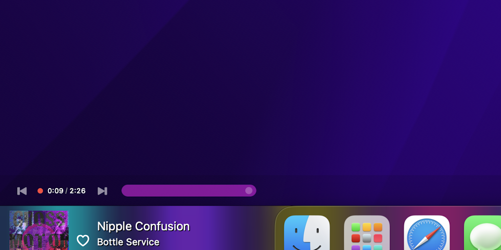 Turn your macOS Dock into a dynamic light bar that syncs with your music. Display track details and album cover art right beside the Dock. Control music playback with clickable controls that are alway