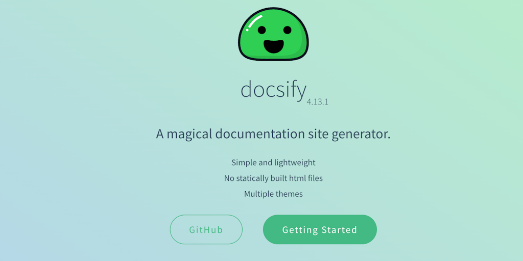 Docsify generates your documentation website on the fly. To start using it, all you need to do is create an index.html and deploy it on GitHub Pages.