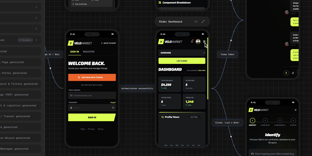 Simply describe your idea, and get every screen of your application designed instantly from onboarding to checkout, with complete user flows for both web and mobile.