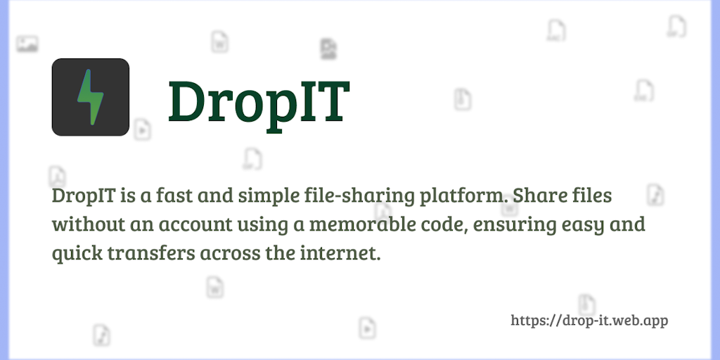 DropIT is a fast and simple file-sharing platform. Share files without an account using a memorable code, ensuring easy and quick transfers across the internet.