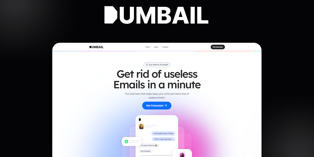 Dumbail is a free Chrome extension designed to streamline your Gmail experience by automatically hiding useless and distracting emails. Transform your cluttered, overwhelming inbox into a clean, distr