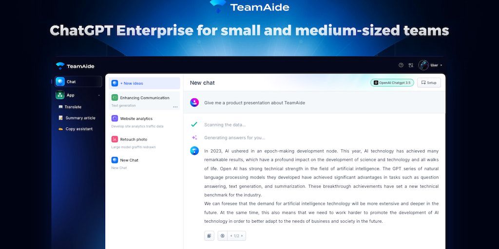 TeamAide - ChatGPT Enterprise for small and midsize companies | Product Hunt