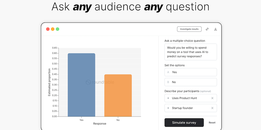Ask any question, target any customer segment, and Roundtable will instantly estimate the survey responses.