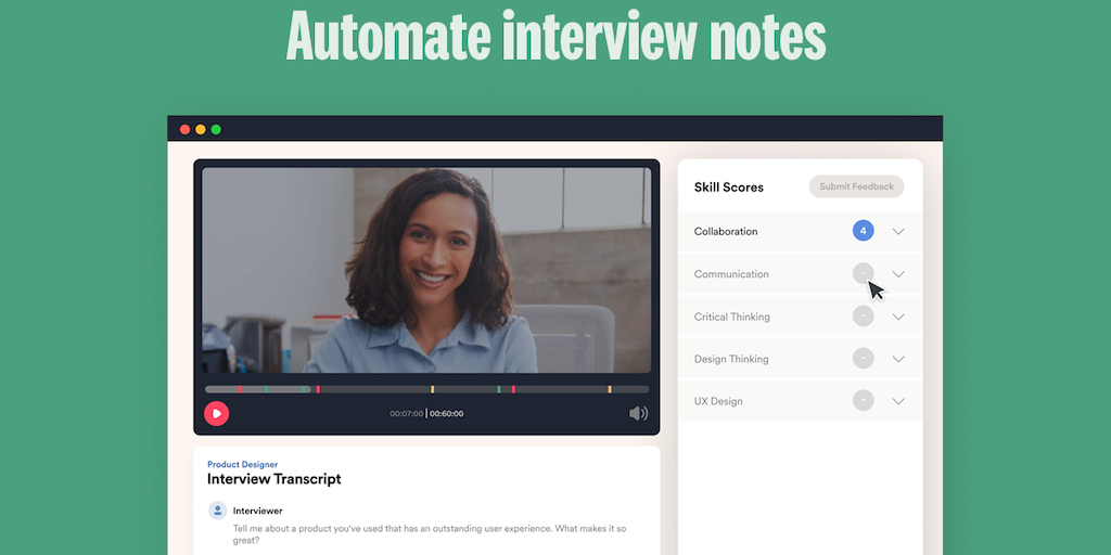 Great hires start with great interviews. Hireguide uses AI and hiring science to help teams create structured interviews that screen for skill and automate interview notetaking. The result? Better qua