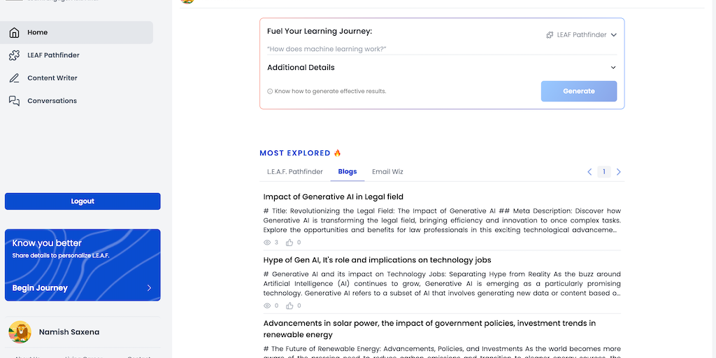 L.E.A.F.™ - Learn. Engage. Ask. Find. - AI & human powered career companion for Gen Zs | Product Hunt