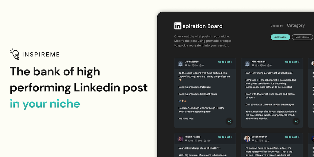 InspireMe - Recreate Lead Generating Linkedin Content In Your Niche | Product Hunt
