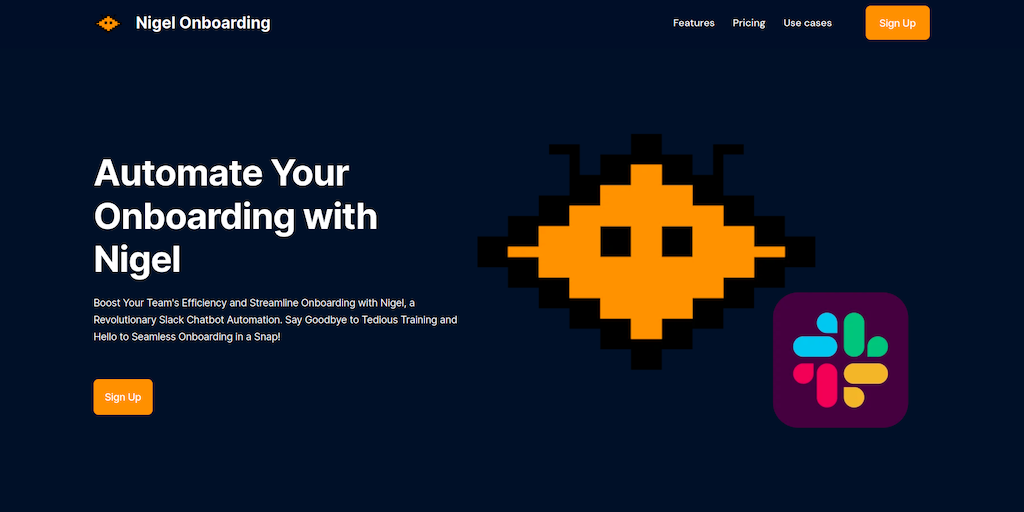 Boost Your Team's Efficiency and Streamline Onboarding with Nigel, a Revolutionary Slack Chatbot Automation. Personalize your onboarding for different team and job titles, set up FAQ for newcomers or