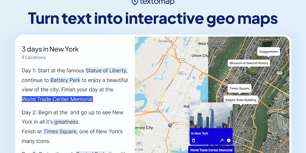 Textomap 2.0 - Turn text sources and ChatGPT prompts into interactive maps | Product Hunt