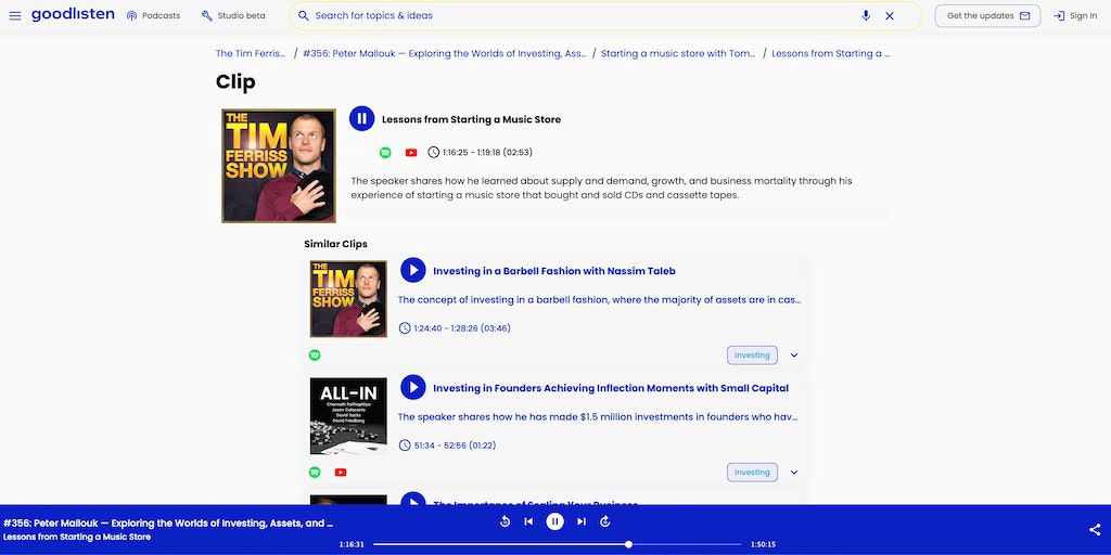 Find your next Podcast with the help of AI. GoodListen is an AI-driven audio comprehension app for podcast creators and listeners. Discover new podcasts, skip to the next exciting chapter, clips or re