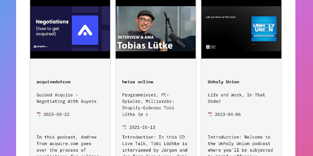 Summarize & transcribe with ChatGPT Generate landing page with summary, 7 points & memorable quote. Convert your thoughts into a blog post. Supports Youtube, Spotify, Spreaker & Audio. Audio formats m
