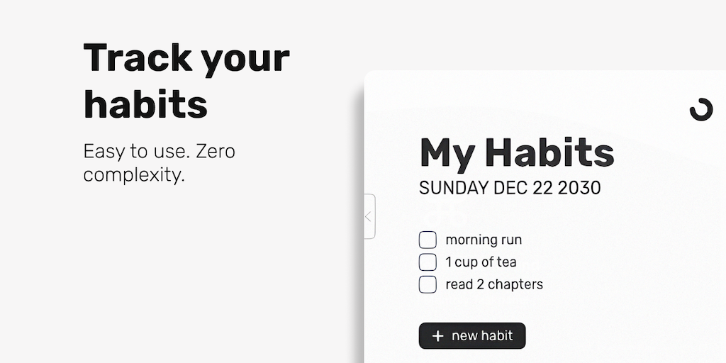 Simple, minimalist habit tracking. Improve your life with new, impactful habits. Create weekly recurring habit schedules. Make your habits stick with progress visualizations for week, month, year, and