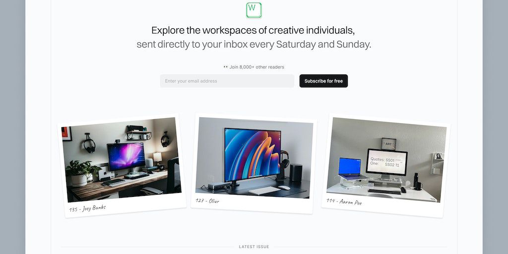 Workspaces gives you a behind-the-scenes tour of the desk setups of inspiring creatives, designers, developers, entrepreneurs, etc. every week. Delivered to your inbox every Saturday and Sunday.