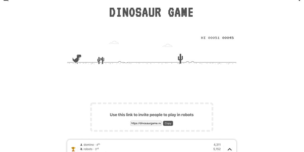 Ever wished you could play the Chrome dino game whenever you want? Sadly, the default game only works in Chrome (duh!). But what if you could play from any browser — while also competing against the e