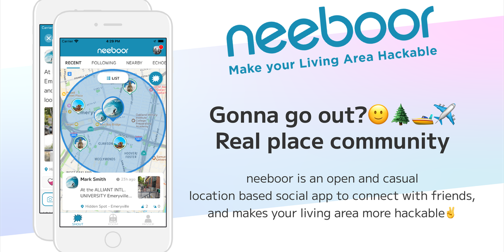Hack your living area and discover new people and experiences! neeboor is a brand new open and casual location-based social media app that let`s you connect with friends and share real-time experience