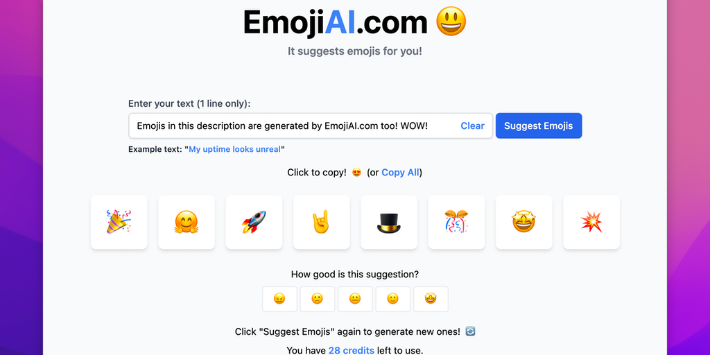 EmojiAI.com - Suggest emojis for your text, tweet, or marketing copy! 📜 | Product Hunt