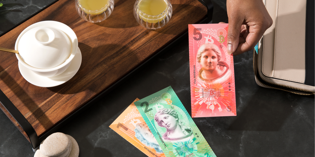 Beautiful, printed cash notes backed by Bitcoin in secure NFC chips. Each note is printed with currency-grade elements that use secure printing techniques.