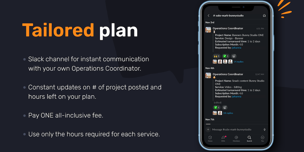With over 100+ services we provide personalized and risk-free projects with a designated team. Forget about dealing with tiresome freelance coordination and never miss a deadline again.