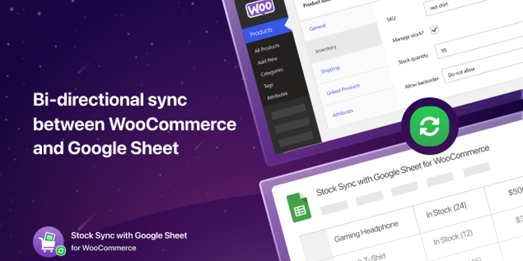 🚀 Stock Sync for WooCommerce with Google Sheet is a FREE WooCommerce stock management plugin that helps you efficiently manage your products. ⚡ Super-fast products sync 💫 Supports variable product 🎁 U