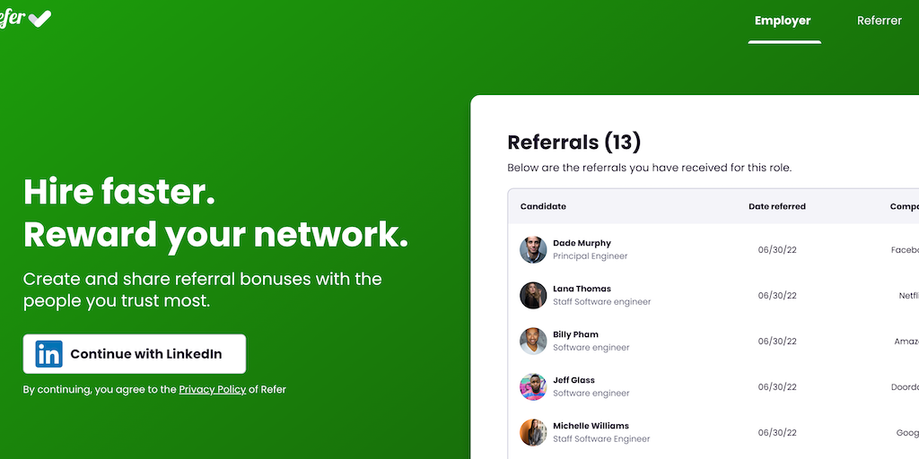Refer - Promote your network to top jobs in tech & get rewarded | Product Hunt