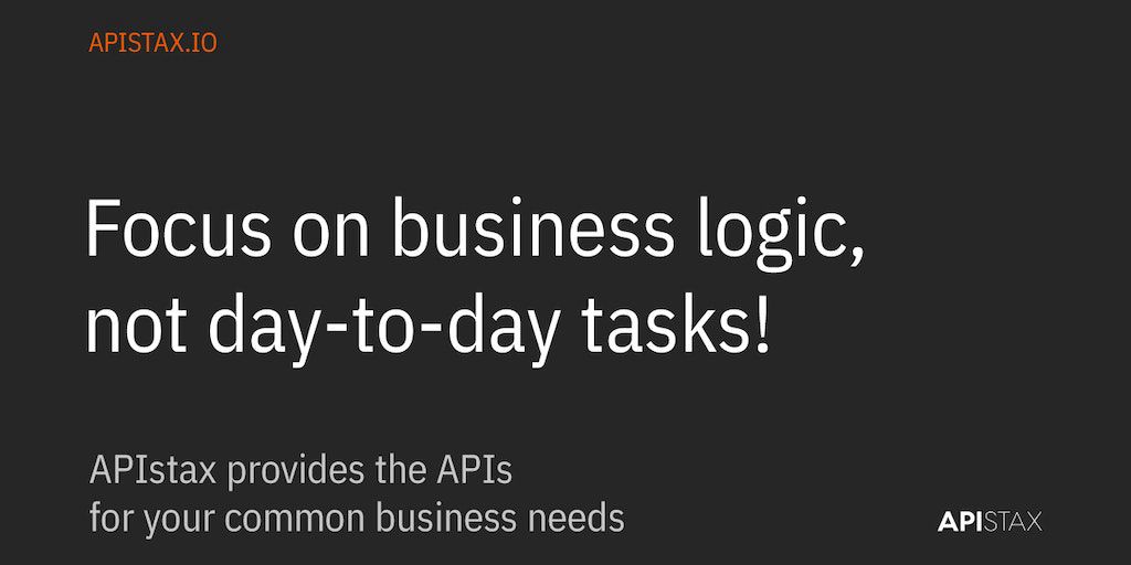 APIstax is the one-stop-shop for APIs, to focus on business logic, not day-to-day tasks! Create PDFs from HTML, generate EPC QR codes, check VAT numbers, geocode addresses or load consumer price index