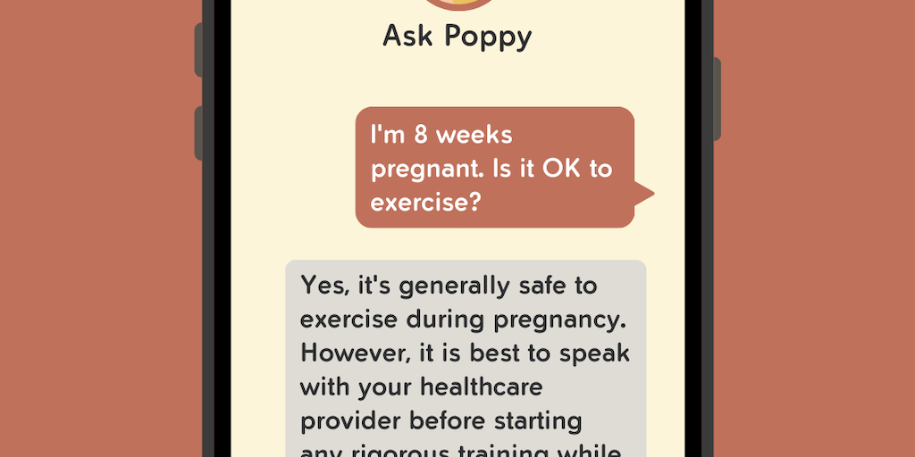 Poppy is an AI-powered text conversation in real-time, to get the answers you need and the peace of mind when you need it. Whether you’re thinking, trying, pregnant, or postpartum, she's the friend yo