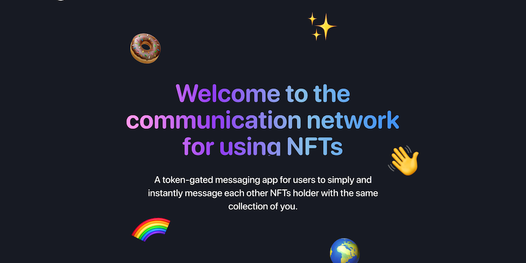 A token-gated messaging app for users to simply and instantly message each other NFTs holder with the same collection of you. You can build a space with only those who have the same collection of NFTs