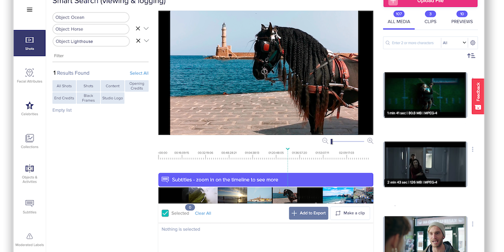 A.I. video analysis, search & clip generation platform enabling users to instantly deep-search their media libraries for specific scenes categorized by emotion, object, people, action, scene type, wor