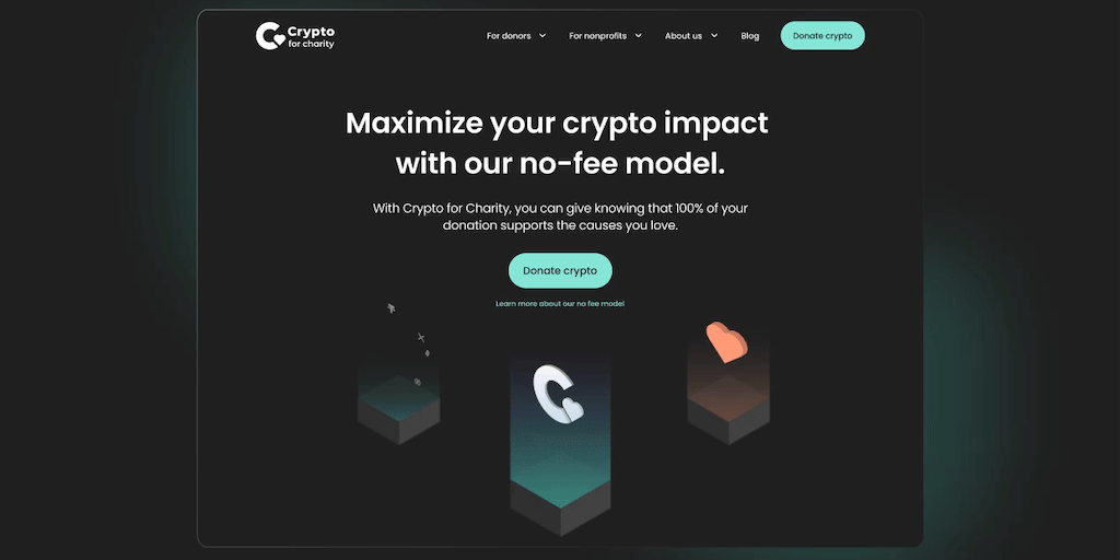 Crypto for Charity is a zero-fee platform enabling donations of 100+ different cryptocurrencies like Bitcoin, Ether, stablecoins as well as NFTs directly to support charities and causes you love while