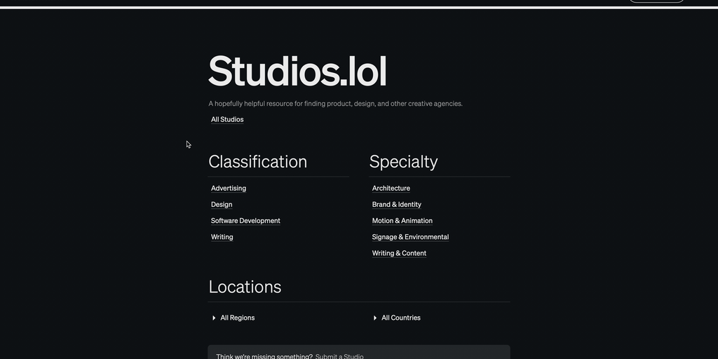Studios.lol - Discover product, design, and other creative agencies | Product Hunt