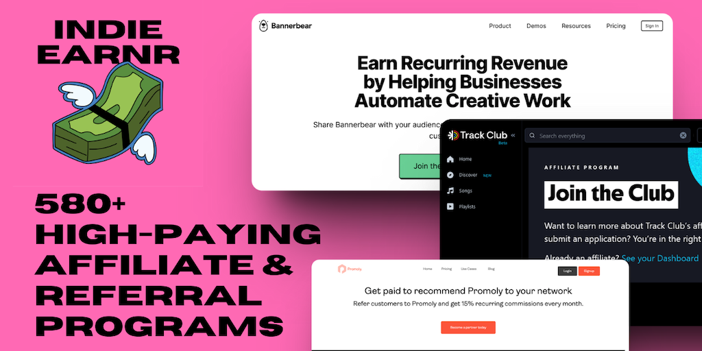 Finding the right partnership, affiliate and referral opportunities can be time-consuming and challenging. Using IndieEarnr helps you quickly discover and join affiliate programs that resonate with yo