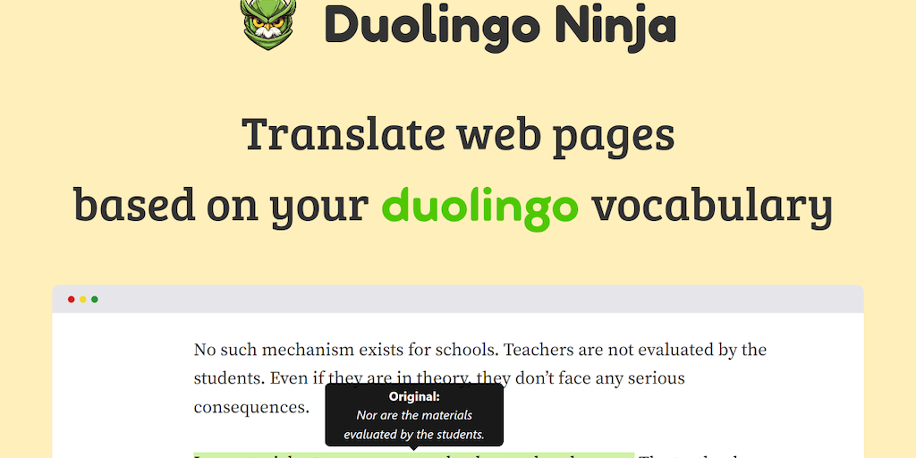 Duolingo Ninja - Learn your Duolingo vocabulary while browsing the web | Product Hunt