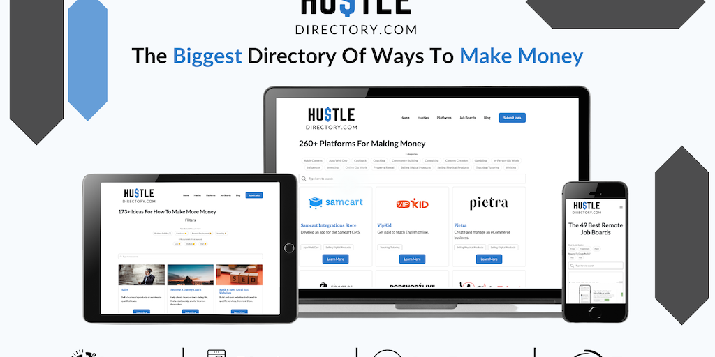 HustleDirectory is a free directory of ways to make more money, primarily online. It's the perfect place to discover your next side hustle, passive income source, or full-time career.