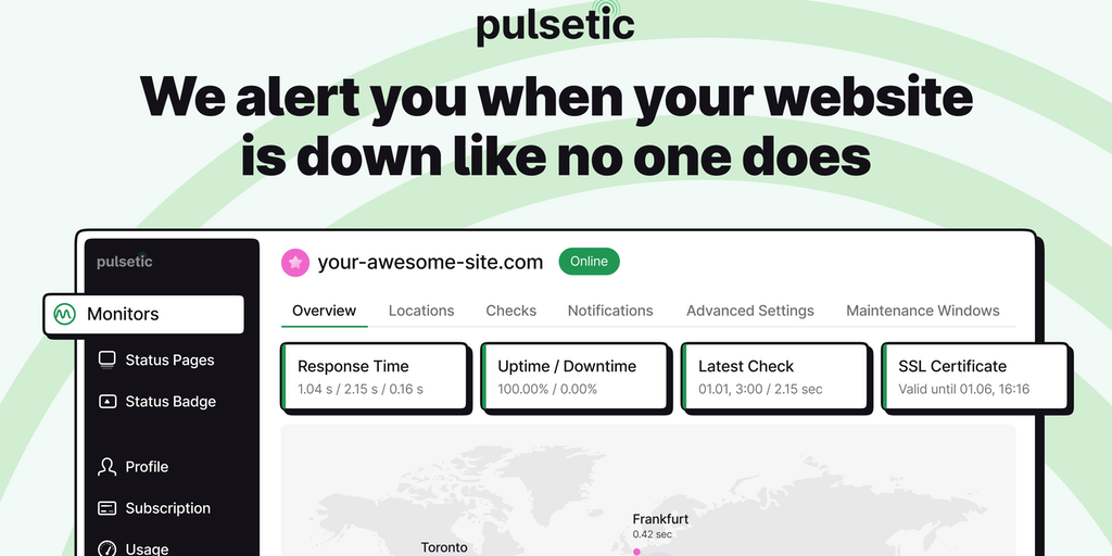 Pulsetic - Website uptime monitoring, alerts, status pages & badges | Product Hunt